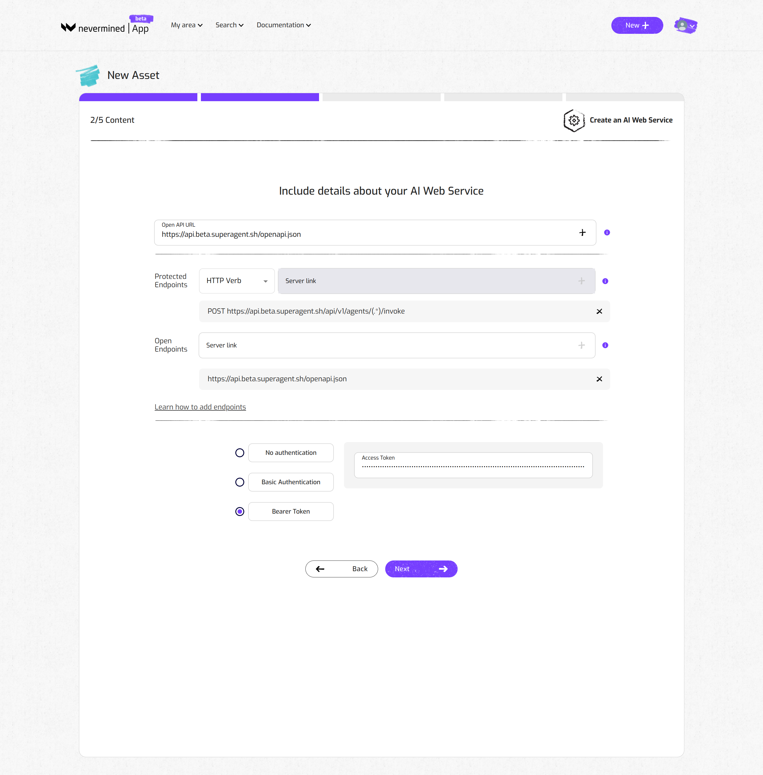Please note that Nevermined fully encrypts the Bearer Token information that you submit so that this information is never disclosed to anyone but yourself.