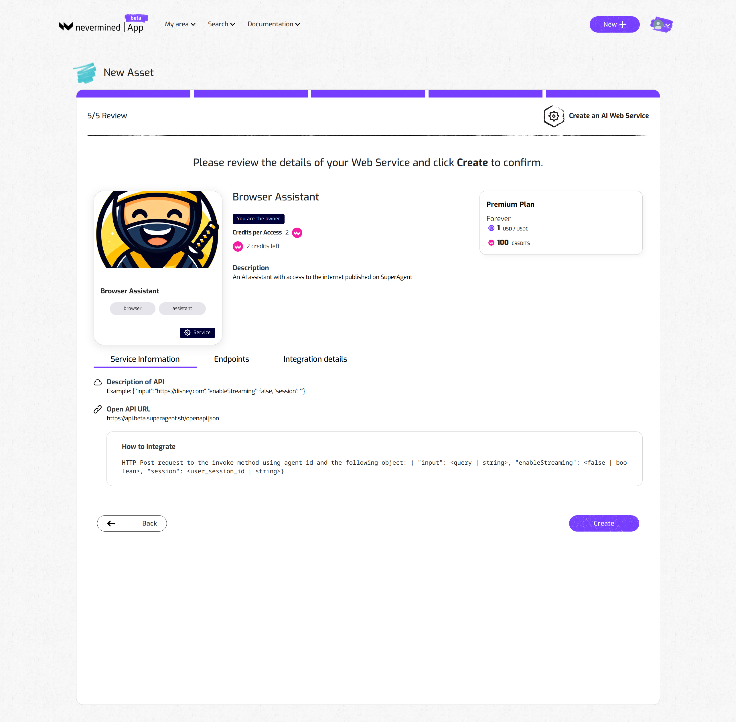 In a previous tutorial we showed how to setup your Nevermined account and how to create a Pricing Plan. Here we go through the required steps of registering a new AI Agent existing on Super Agent and linking it to your Pricing Plan. Users who purchase a plan will get access to the Super Agent AI service that is included in the Pricing Plan.