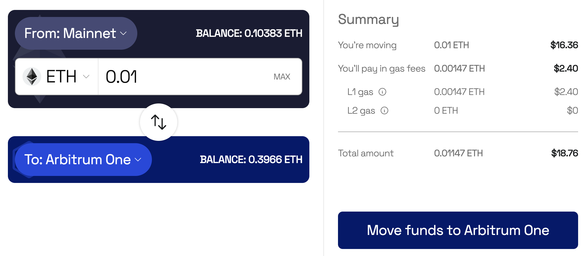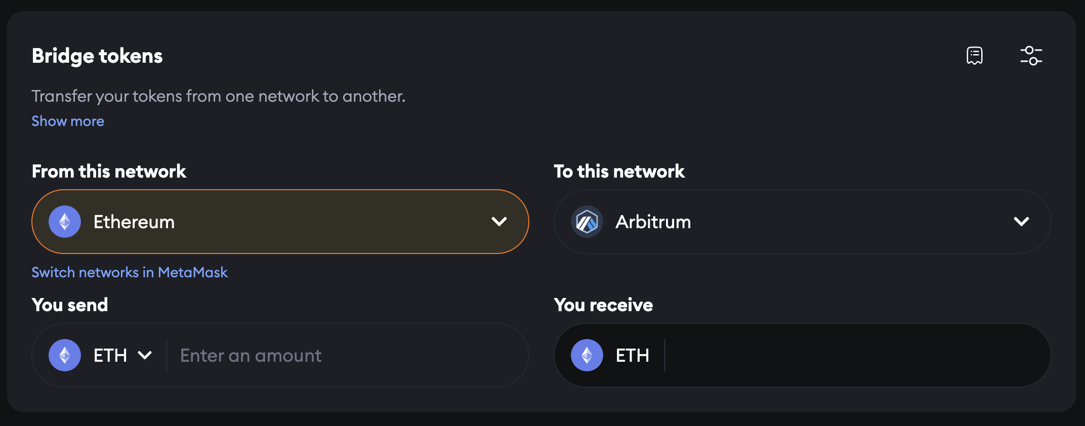 If you have ETH on another network (like Ethereum), you can bridge it to make it available and usable on Arbitrum.