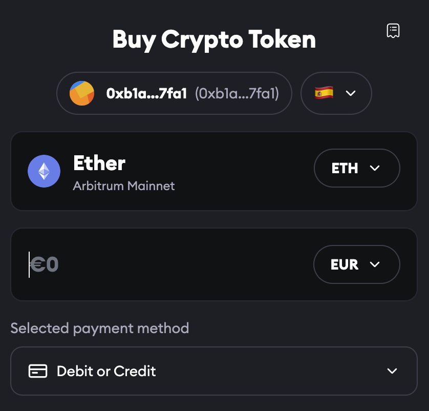 You will be prompted to select your country. Based on this, MetaMask will offer different payment methods, like Credit/debit card, SEPA or a third-party service like MoonPay or Transak.