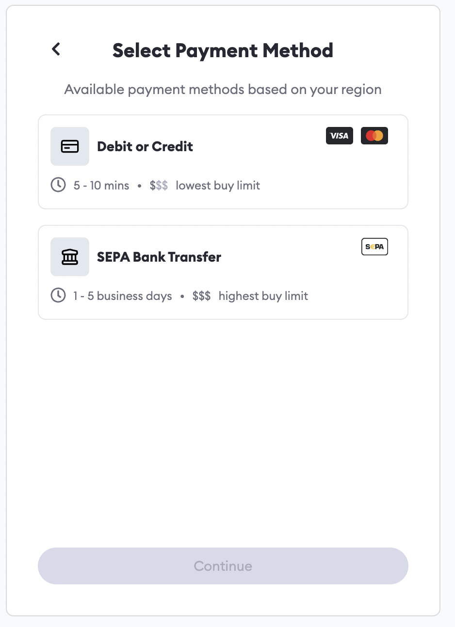 Based on this, MetaMask will offer different payment methods, like Credit/debit card, SEPA or a third-party service like MoonPay or Transak to facilitate the transaction.